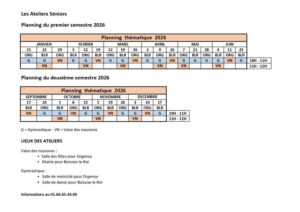 Planning des Ateliers Séniors 2026 Dernière mise à jour le 30 décembre 2025 Planning des Ateliers Séniors 2026